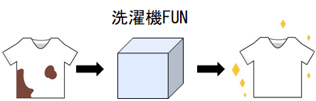 | 例 | 洗濯機Aというファンクションを作ります。 汚れた服を入れ、パラメータをセットして洗濯します。 処理が完了すると、きれいになった服が出てきます。 ![]() |