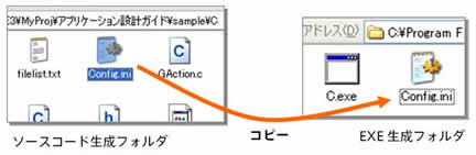 実行モジュールのフォルダ内にConfig.iniファイルがない場合は、実行モジュール(EXEファイル)と同じフォルダ内に、Config.iniファイルをコピーしてください。Config.iniファイルは、GENSKETCH3のソースコード生成先フォルダに自動生成されています。
