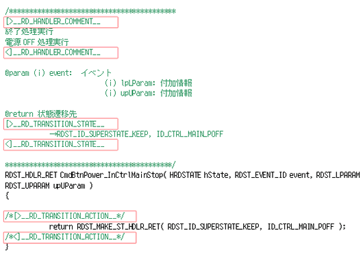生成されたソースコード内には以下のような特殊コメントが存在します。