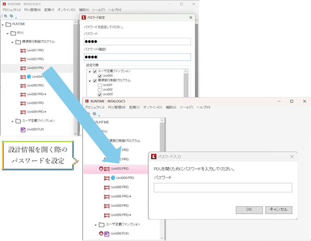 プログラム構成要素(POU)単位でパスワードを設定できるようになりました。